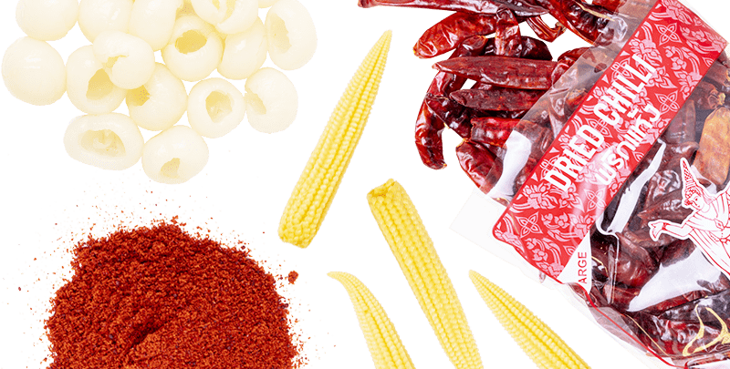 There are numerous types of Asian vegetables, fruits and herbs that add their unique flavour and texture to dishes. For example, a popular vegetable in Asian cuisine is bamboo, which is often used in stir-fries and soups. In this category, you will also find many types of Asian fruit such as Lychee, Mango and Papaya. To add the truly authentic Asian flavour to your dish, you will also find all kinds of Asian spices here.